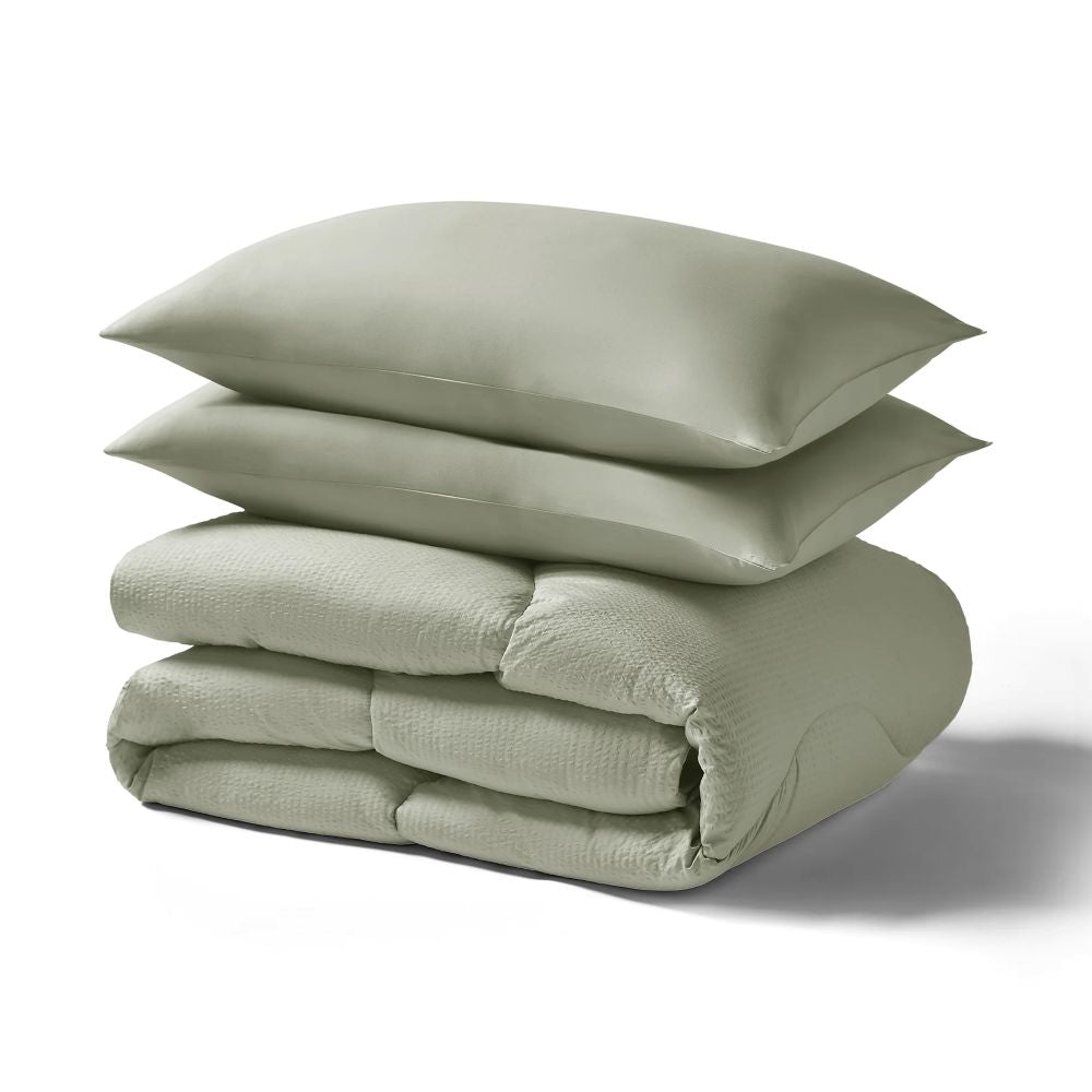 Best of all, this duvet is sewn in an award-winning zero waste European eco-factory in Europe that runs entirely on 100% certified renewable energy, making it as kind to the environment as it is to you and your family. Get ready to experience cosy comfort that’s kinder to our planet with a Seersucker Coverless Duvet Set.