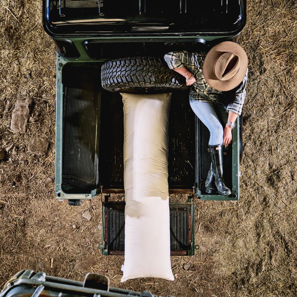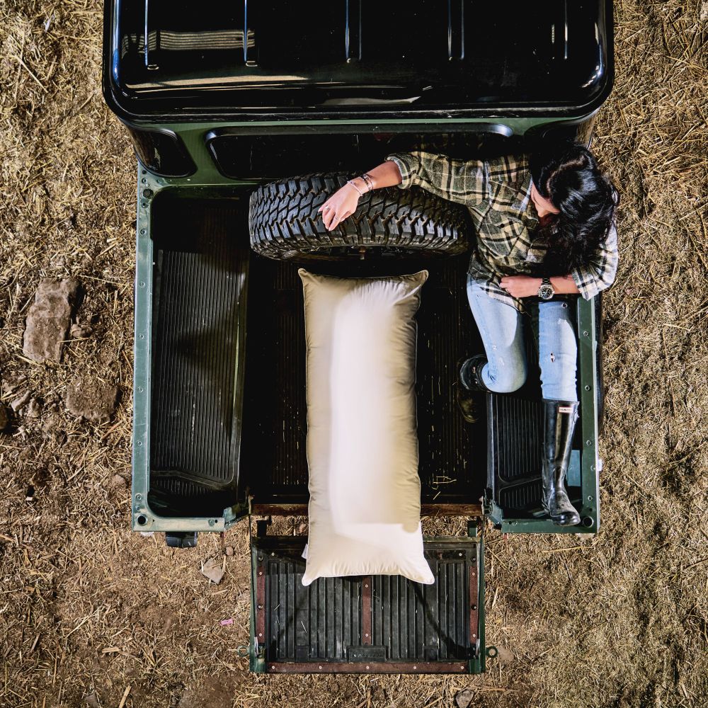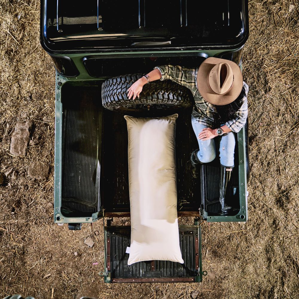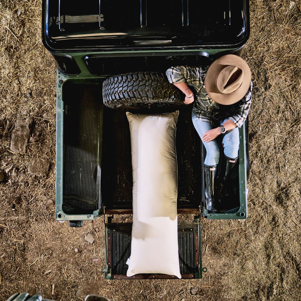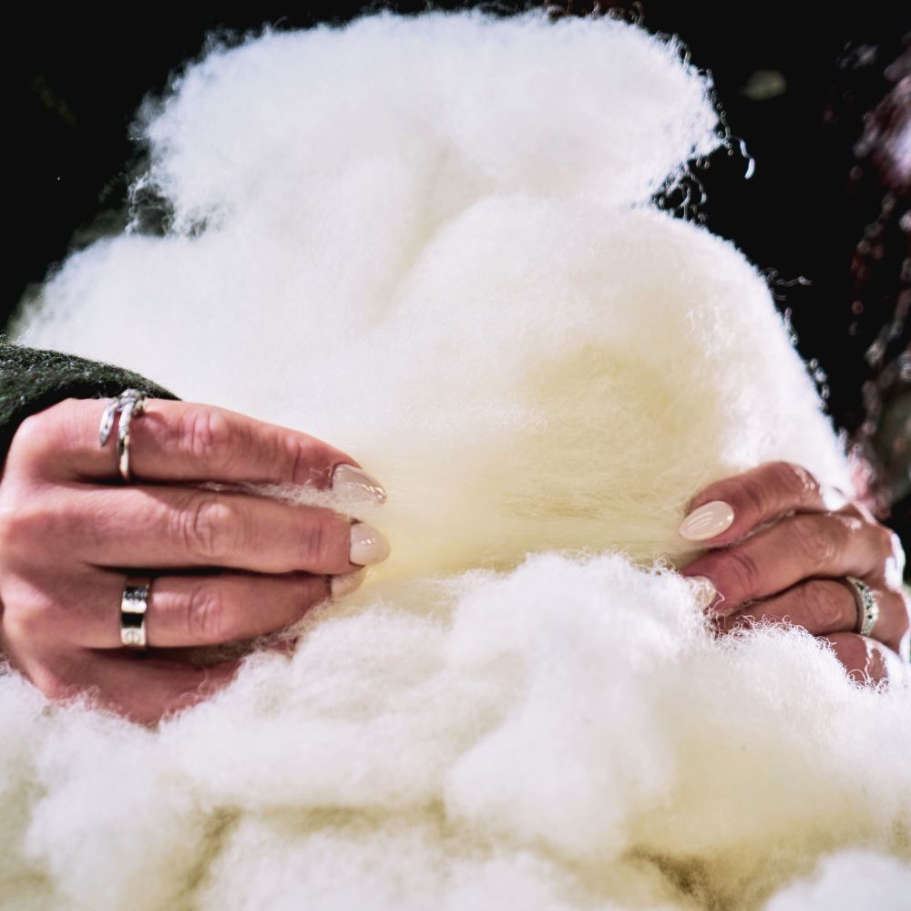 All of our other bolster pillows are made from blown fibre, but with our new innovative Cheviot wool we wanted to use the carding technique. The mechanical carding process disentangles and intermixes the fibres, creating a fluffy, soft and voluminous material. The filling is rolled and folded into the bolster pillow casing and produces a fill that is unwavering overtime and stays plump and bouncy, not allowing the fill the move around.