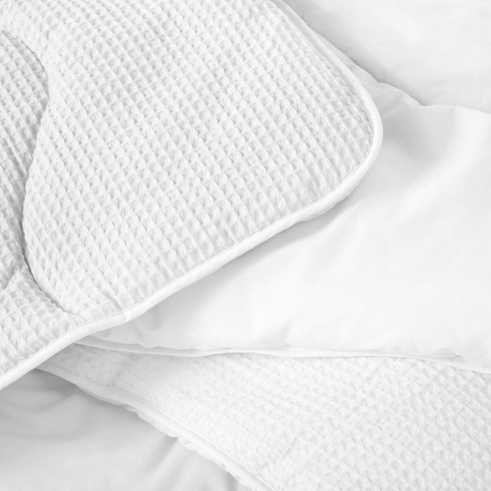 Introducing the premium cotton waffle coverless duvet, a refined bedding staple crafted from 100% cotton with a premium interlock waffle fabric for texture and durability. The cover stitch detailing on the seams enhancers durability, making it a versatile layering bedding essential.