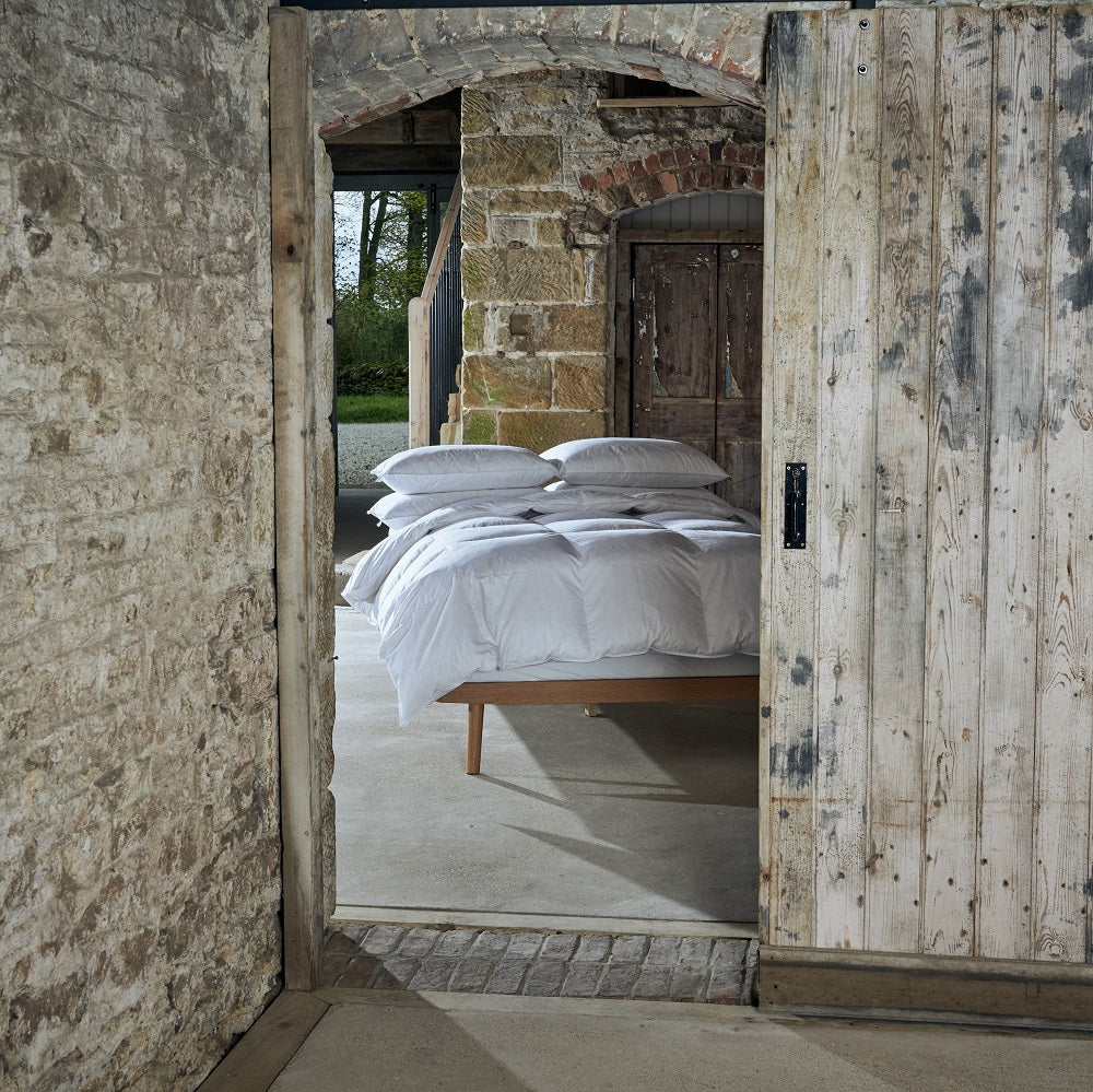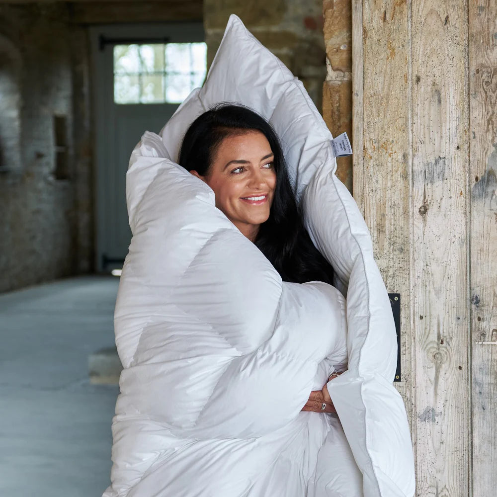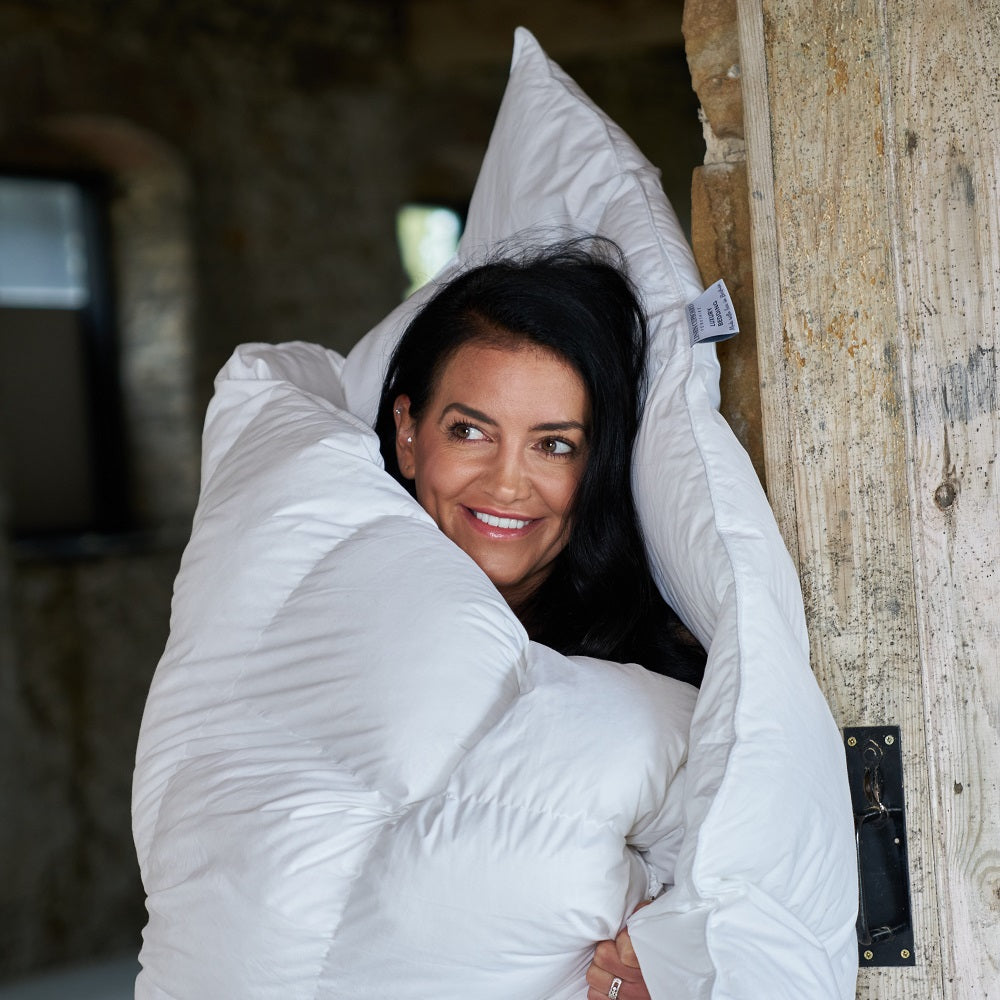 Our super-soft duvets are filled with the finest 100% European duck down clusters. We’ve sourced the fluffiest down possible, which gives these duvets their extreme softness, but the plump feather adds a touch of support.
